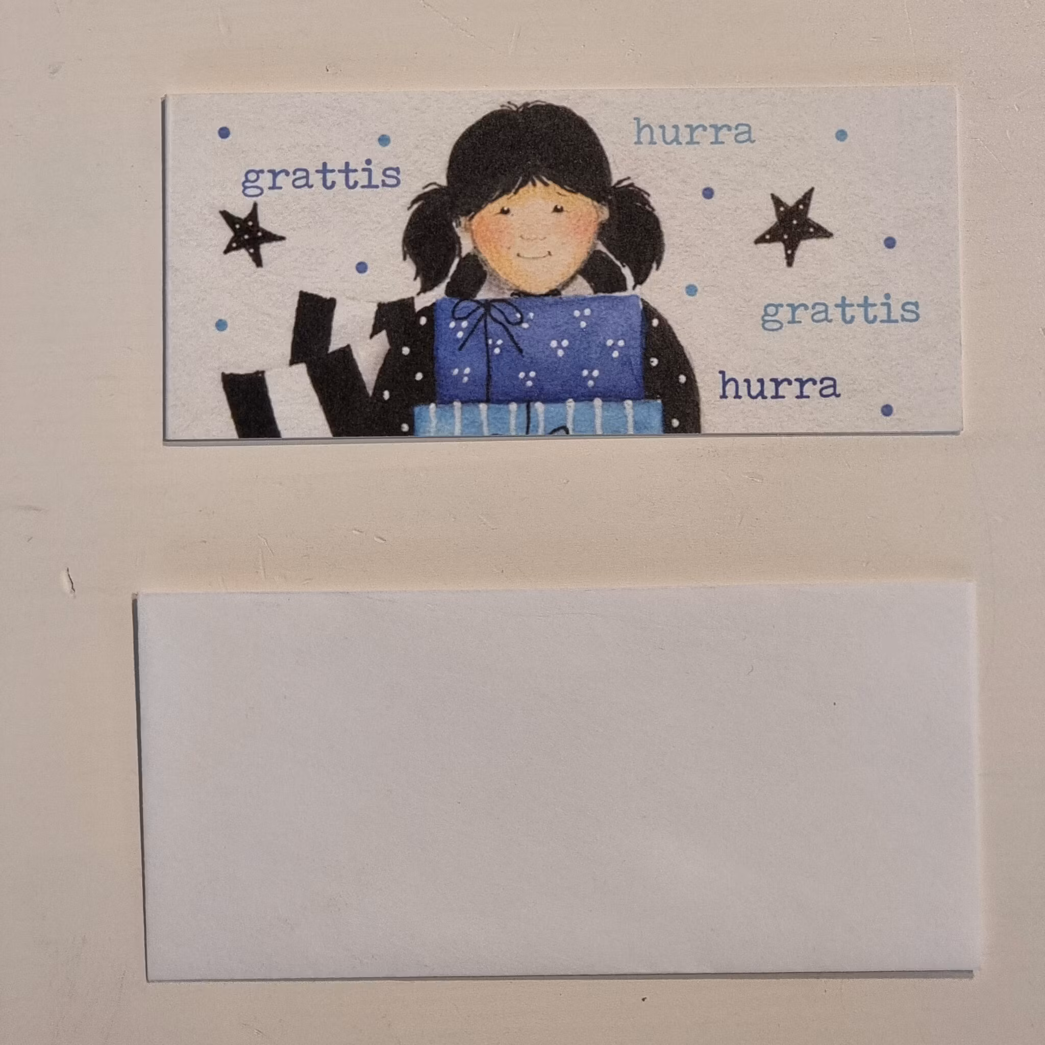Gratulationskort med kuvert. 12x5 cm. Dubbelvikt kort med blank insida. Tryckt på ett matt, extra tjockt papper (Svanenmärkt).