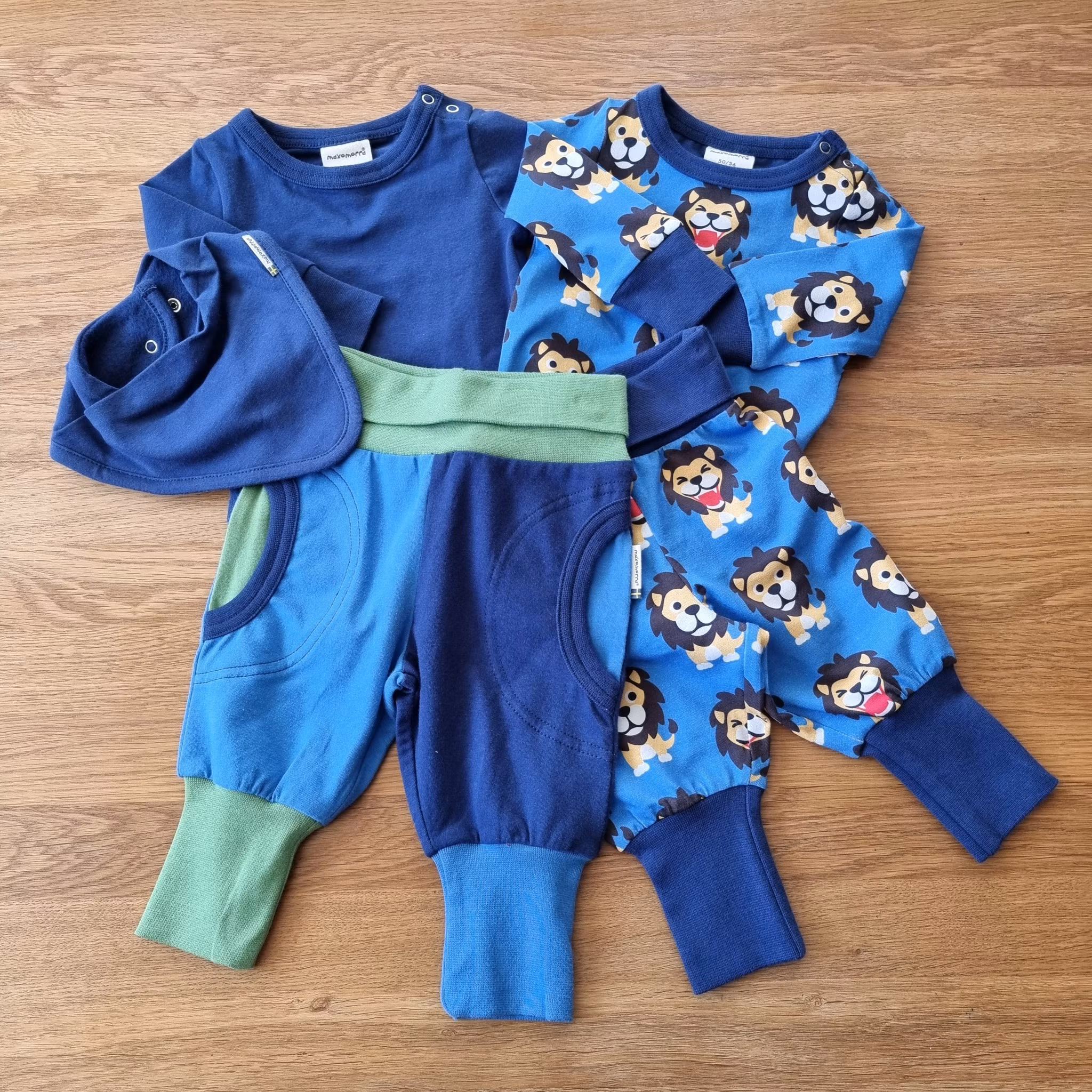Fint paket med babykläder i storlek 50/56 från Maxomorra. Priset är nedsatt med 70% från ordinarie pris!