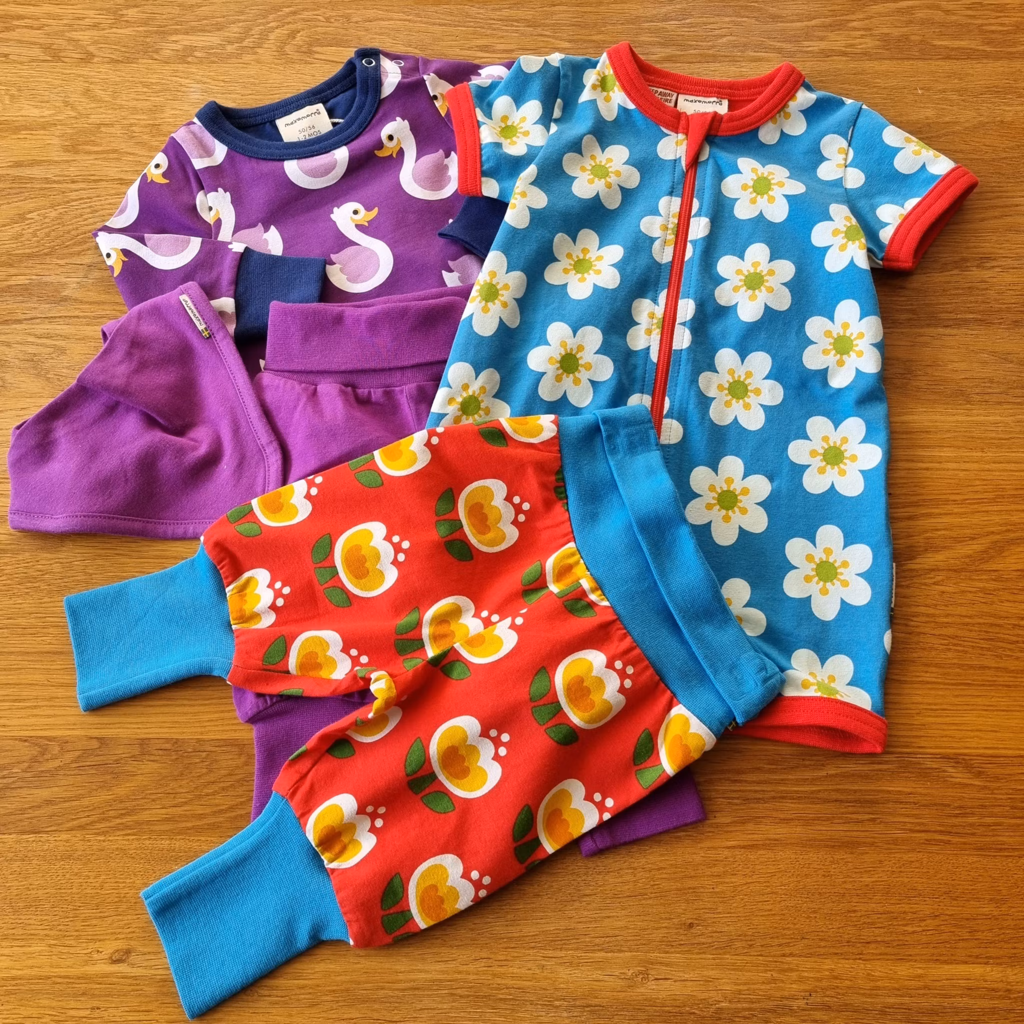 Fint paket med babykläder i storlek 50/56 från Maxomorra. Priset är nedsatt med 70% från ordinarie pris!