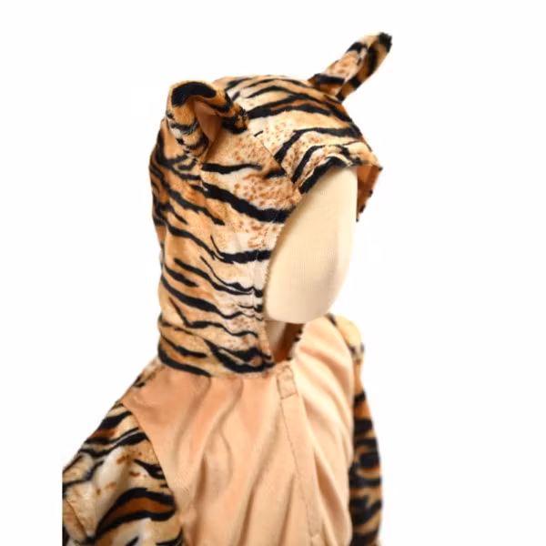 Tigerdräkt för mindre barn i silkeslent korthårigt fuskpäls-tyg. Fastsydda detaljer och kardborreknäppning. Storlek: 2-4 år 100% polyester. Handtvätt 30 grader