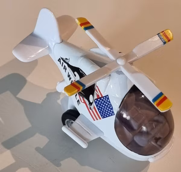 Helikopter i metall. 10 cm som längst.