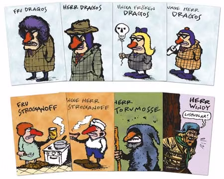 Rymd-Börjes löjliga familjer. Samla familjerna. 56 spelkort och spelregler. Från Hjelms Förlag.