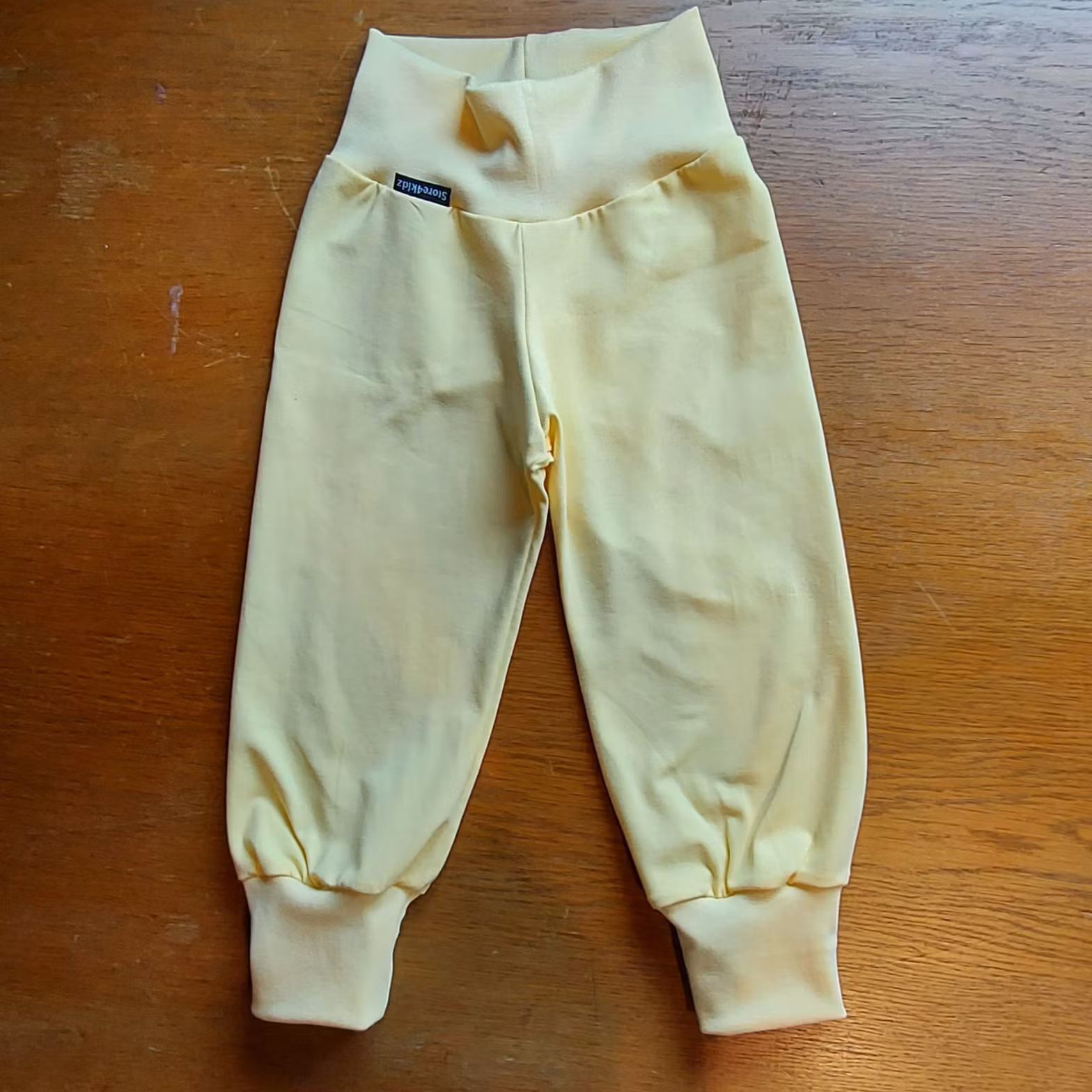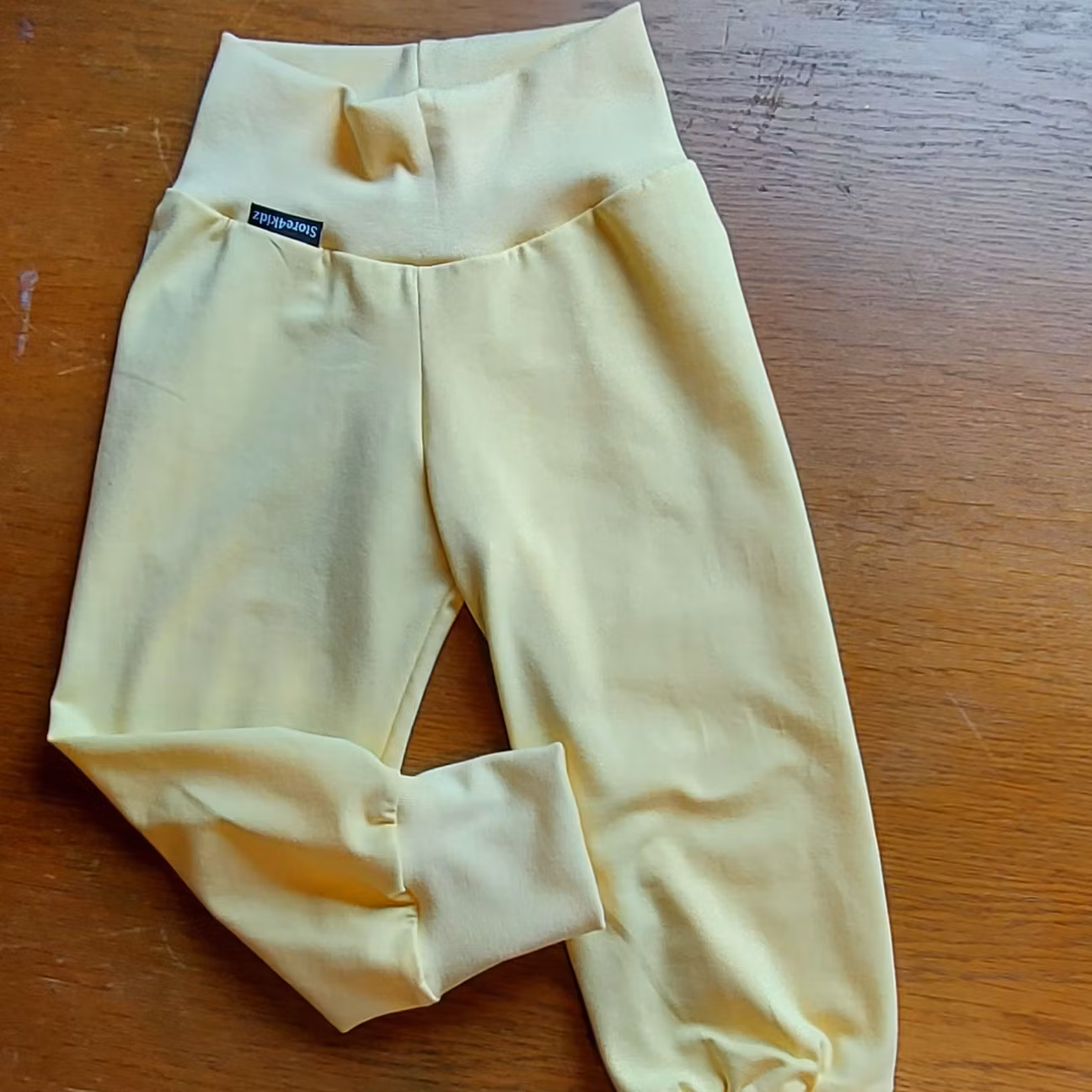 Enfärgad vaniljgul, perfekt till alla sorts plagg - t-shirts, klänningar mm. Exempel på uppsydda plagg. 95% bomull, 5% elastan. Ökotex. Bredd 150 cm.Vill du bes
